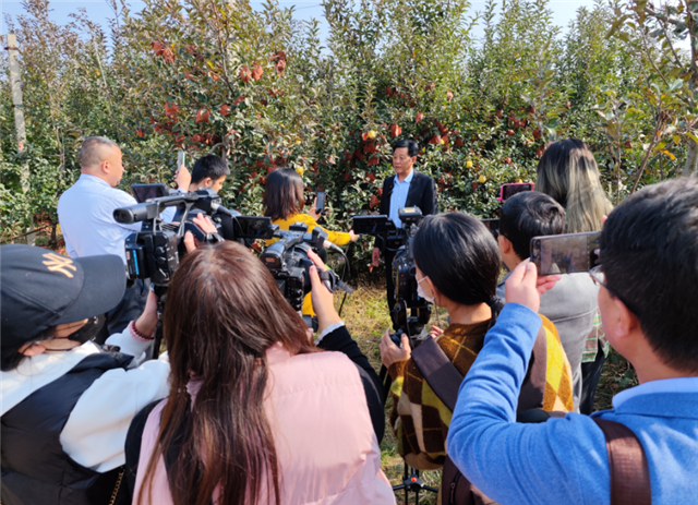 11月8日,全媒宣传活动首站聚焦威海苹果的新名片——威海金。众多媒体记者也满怀疑惑地进园探寻——为啥威海金苹果售价是红富士的4倍,在市场上却依旧一果难求?