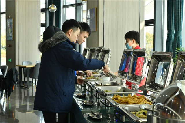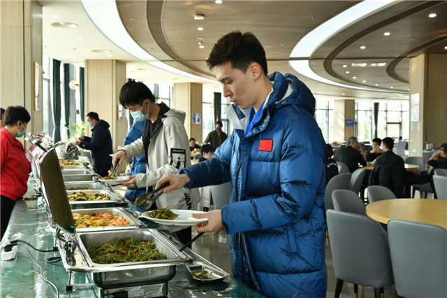 餐饮服务是赛事保障中重要的一环,贯穿赛事始末。威海南海国家乒乓球训练基地作为国乒队日常战备集训基地,在3年多的运营管理中,已经熟练掌握了各队员的“口味”。“酒店的厨师、营养师都是经过国家队指导过的,按照国家队标准和营养均衡表要求合理安排膳食,既保证了种类丰富,也可满足运动员的个性化需求,并且一天安排了4次用餐时间,最晚到晚上22点,可满足不同运动员比赛和集训的能量补充需求。”威海南海乒乓球训练基地相关责任人说。