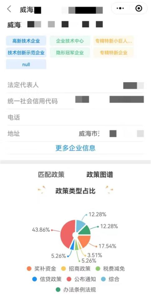点击政策图谱按钮,可以按照匹配政策类型占比来查看该企业的统计数据。
