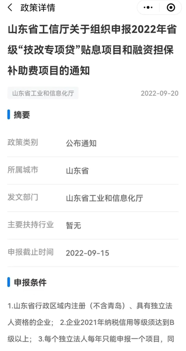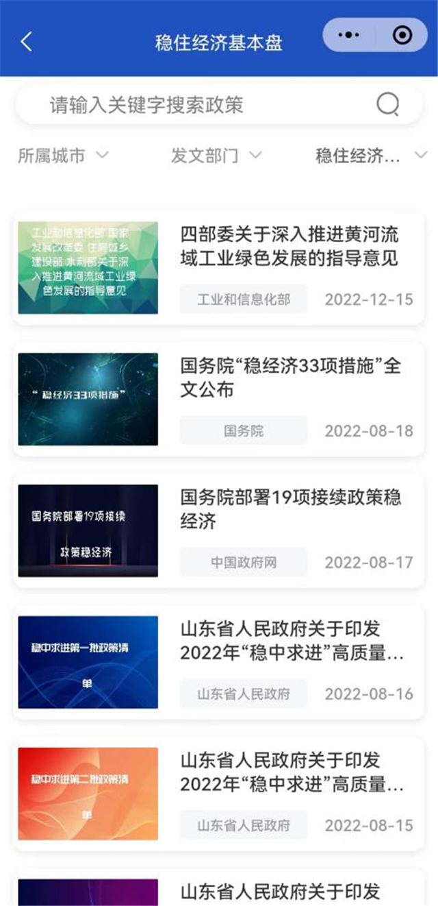 为深入贯彻中央稳经济33条和省四批次稳经济政策措施,现面向企业推出山东省稳住经济基本盘惠企政策平台微信小程序。