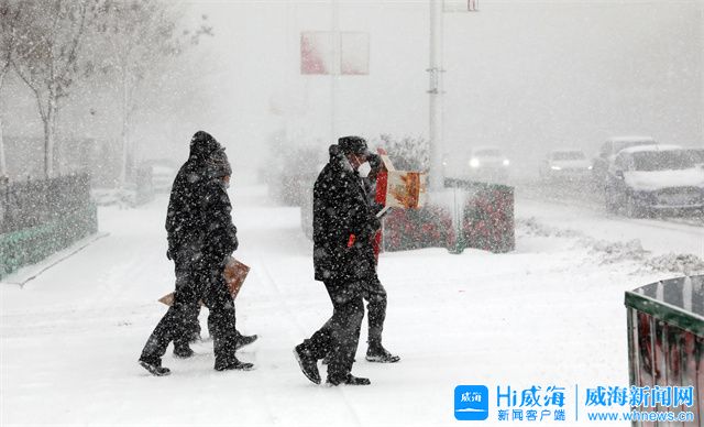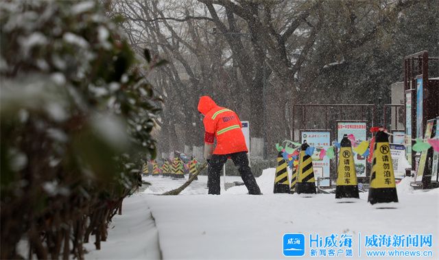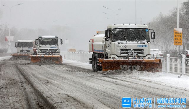 Hi威海客户端讯 12月17日上午,受强冷空气影响,威海市区出现强降雪天气,清雪部门以雪为令,随下随清,适当使用融雪剂,有力保障重点路段安全畅通。