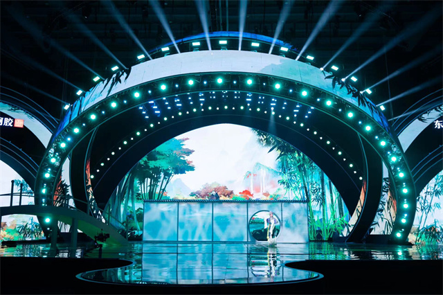 威海成山头是中国大陆海岸太阳最早升起的地方,整个2023年山东春节联欢晚会舞台现场设计也正是源于此。主舞台的设计犹如一轮刚刚从海平面升起的太阳,层层光圈犹如太阳的光晕,也象征着春节之际阖家团圆。而线条感的设计又代表着水,带来了无限的延伸感。