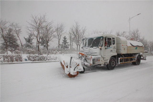为应对此次风雪天气,南海新区相关部门严阵以待,提早调试、调度好扫雪铲冰设备。从12月22日凌晨至23日,清雪队伍根据雪情对辖区各主干道进行不间断除雪作业,实行巡回滚扫减量作业,并配合推雪板采取机械编组作业,25辆专业作业车辆和300多名清雪人员轮番上阵,克服道路机械作业困难、雪后结冰等不利因素,连续作业,迅速清雪保畅通。据威海新城控股集团相关负责人介绍,到23日12时,南海新区主干道路已基本畅通,路面未出现明显结冰问题,清雪除冰作业逐渐向次干道展开。
