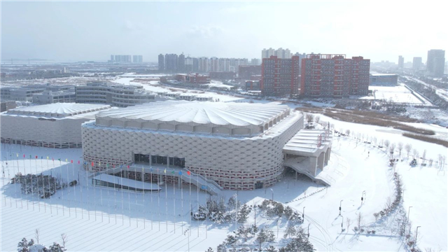 阳光下,大雪纷纷扬扬,漫天飞舞,将城市和道路妆点得宛如冰雪童话世界。在大天鹅栖息地,近20只大天鹅在映着白雪在水中追逐、嬉戏,展翅起舞。万亩松林被一片皑皑白雪覆盖,呈现出“玉树琼枝”美景,宛如仙境。南海公园里,雪花纷纷扬扬、飘飘洒洒,晶莹如玉,洁白无瑕。雪后的威海南海国家乒乓球训练基地银装素裹,空中俯瞰别有一番韵味,充满冬日静谧之美。