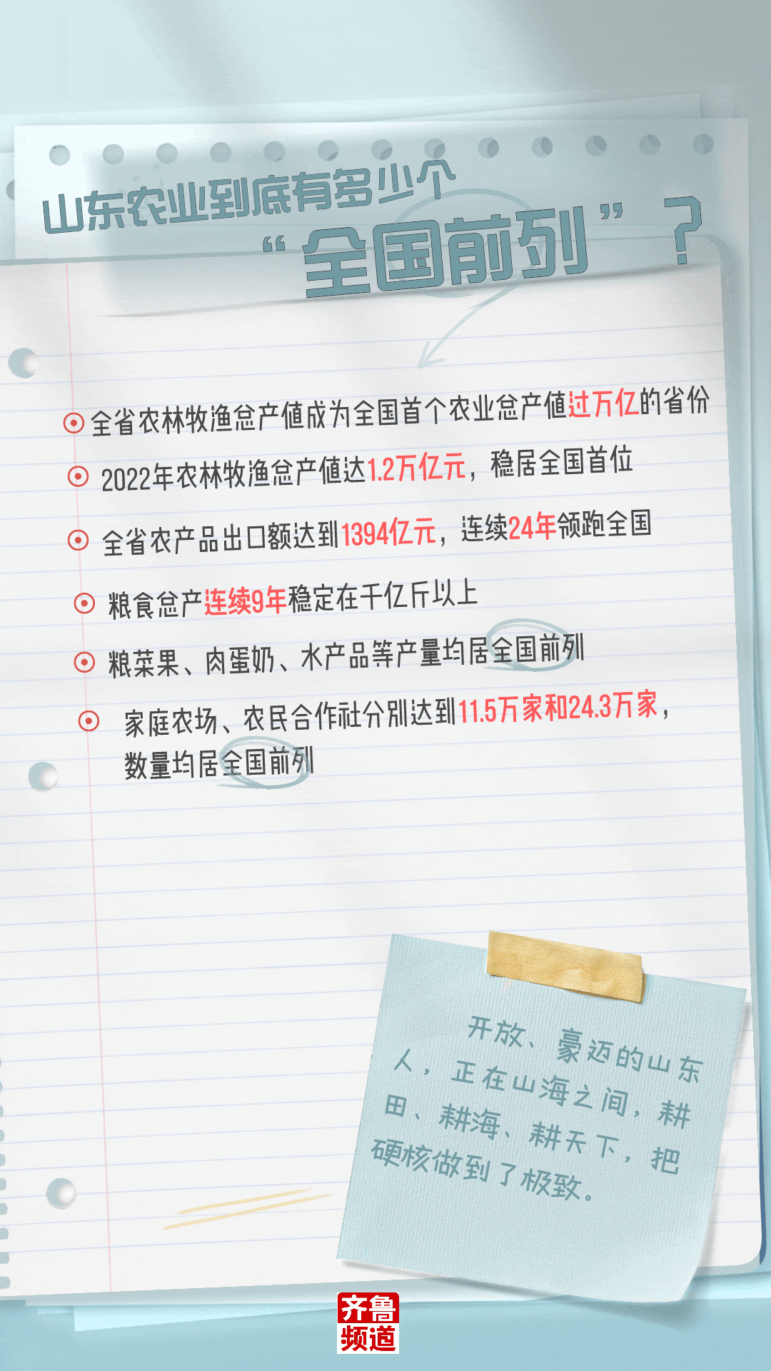 山东历来是我国农业发展的“排头兵”,在农业强国建设中走在全国前列,发挥引领、示范和标杆作用。一图读懂,山东农业到底有多少个“全国前列”。