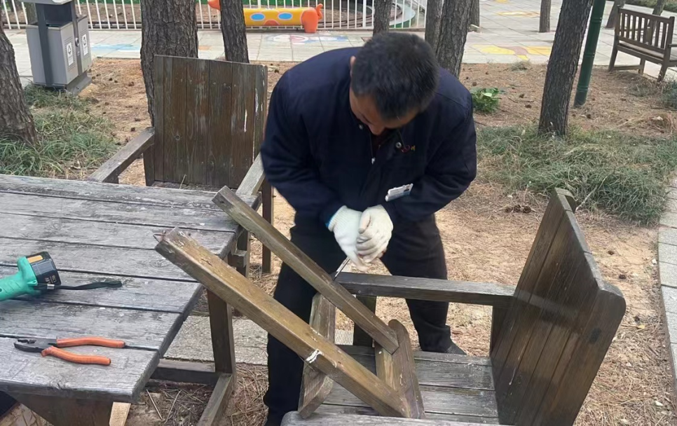 Hi威海客户端讯 近日,在林海公园,工人们正忙着修缮破损的座椅。立春以来,高新区建设局开展“春风行动”,管好“园林家具”,集中维护和检修各类绿地设施,消除设施隐患,提升设施品质,以满足人们游玩观赏、运动健身、休闲娱乐的需求。
