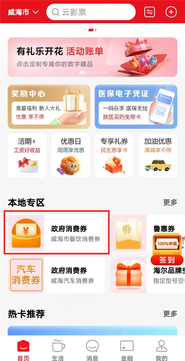※领取及核销优惠券时均需打开手机定位并允许“云闪付”APP获取位置信息,请将“云闪付”APP更新到最新版本。消费券仅限定位在山东省威海市的“云闪付”用户领取及核销。
