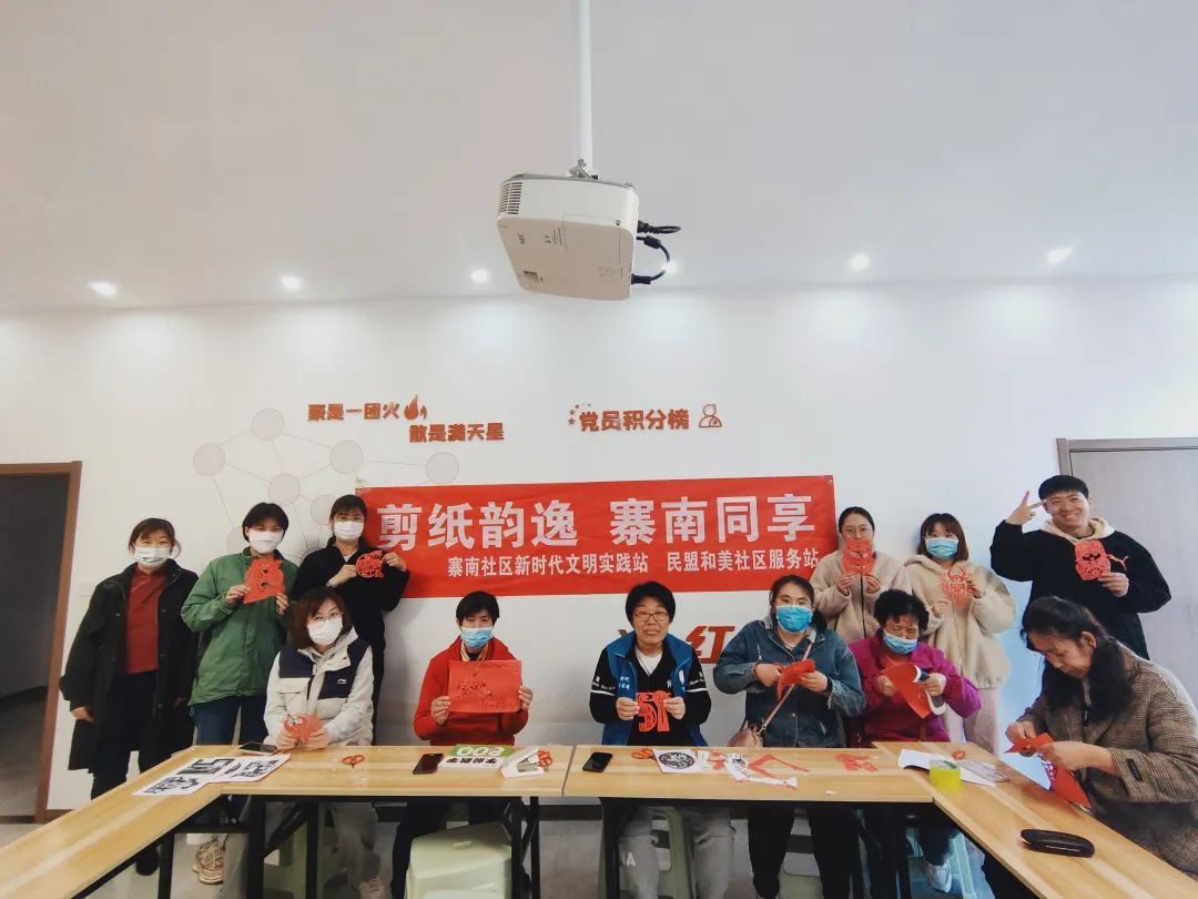 在寨西社区与寨南社区,和美公益课堂的老师和青年志愿者们为居民细致讲解从折叠到剪刻等剪纸的基本技能与技巧,并拿出作品进行展示。居民们围坐在一起,对照老师设计的图案纹理精心剪制,感受着剪纸艺术的魅力。一张张艺术品,活灵活现,栩栩如生,涌动着生活的气息,大家通过剪纸的方式,用红色中国风向奋斗在一线的劳动者致敬。