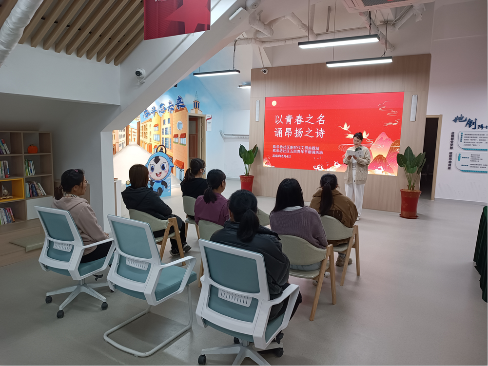 为继承和发扬五四精神,凝聚社区工作人员的力量,展现青年社工的青春风采,增强社区工作人员投身精致社区建设的责任感和使命感,筑牢理想之基,增强信念之力。5月4日,欧乐坊社区举办了“以青春之名 诵昂扬之诗”五四青年节朗诵会。一首首饱含热情、催人奋进的诗歌在青年们慷慨激昂、声情并茂的朗诵中,演绎着青年人圆梦中华和建功新时代的决心与勇气,充分展示了新时代青年的风采,也表达了青年对祖国深深的祝福。