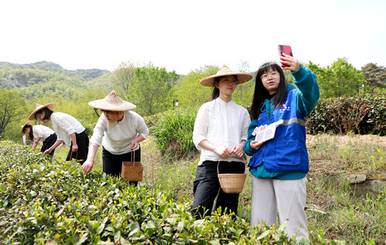 在茶园里,志愿者手把手教茶农下载“学习强国”APP,引导茶农利用“学习强国”浏览信息,让“学习强国”成为助农增收的“宝典”。“给大家看一下,这是我们的茶园,茶农正在采摘茶叶,稍后我们还会进行茶叶的炒制,感兴趣的朋友可以继续关注直播间,给大家分享更多知识。”活动现场,志愿者用直播的方式实时分享茶叶采摘工序,吸引了众多网友留言互动。