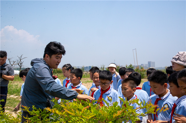 威海市蓝色经济研究院联合南海新区第二实验小学开展主题宣传活动,中国太平洋学会滨海湿地生态系统研究分会、威海海洋信息科学与技术研究院和威海市蓝色经济研究院的科研人员化身宣讲员,面向小学生开展海洋生态系统、蓝碳知识的宣讲普及。同学们边记边提问,感受海洋的魅力与神奇,引发对海洋保护的思考。“今天我学到了很多课堂上没有学到的知识,回去之后,我会把我学习到的知识分享给家人和同学,让大家一起保护好海洋。”南海新区第二实验小学学生吴孟阳说。同学们还来到蓝碳盐生植物实验基地,近距离接触翅碱蓬等盐生植物。在科研人员的讲解下,同学们从书本上看到的知识变成手上可以触摸到的“知识”。“看到了摸到了这些植物,感觉印象很深刻,这是在课堂上体验不到的过程,我觉得很有意义。”王鑫杰说。
