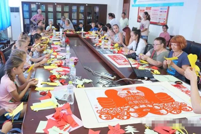 经开区关工委组织“五老”志愿者、区剪纸协会主席田秀卿和有剪纸特长的青少年,与来自俄罗斯的小朋友们共同体验中华传统剪纸艺术。活动中,田秀卿讲解了中国剪纸的历史,展示了她和“小徒弟们”的作品,并带领大家一起体验剪纸制作。俄罗斯小朋友们对中国剪纸充满好奇,折个五角星、剪颗圣诞树、再来个福葫芦……田秀卿带来的“小徒弟们”虽然年纪小,教起外国小朋友剪纸来毫不含糊,俨然变身为“小老师”。俄罗斯带队负责人对活动高度赞誉,真诚邀请“五老”田秀卿和她的小徒弟们赴俄罗斯交流。