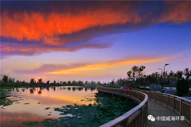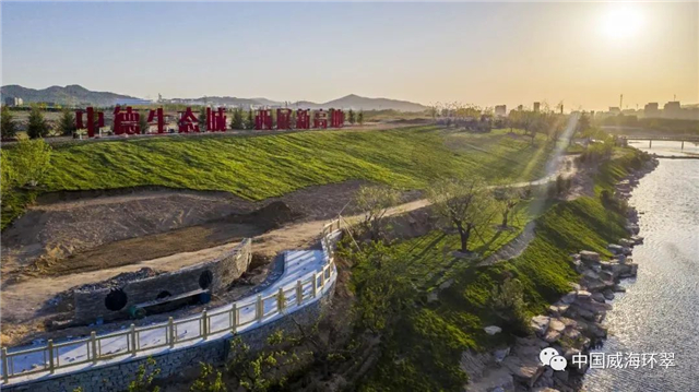 作为环翠区中德生态示范城的重要部分,羊亭河公园采用海绵城市技术,将原生态地形地貌与空间规划、景观小品有机融合,配套建设月季广场、亲水栈桥等10余处景观节点,平平无奇的羊亭河蜕变为生态宜人的湿地公园。