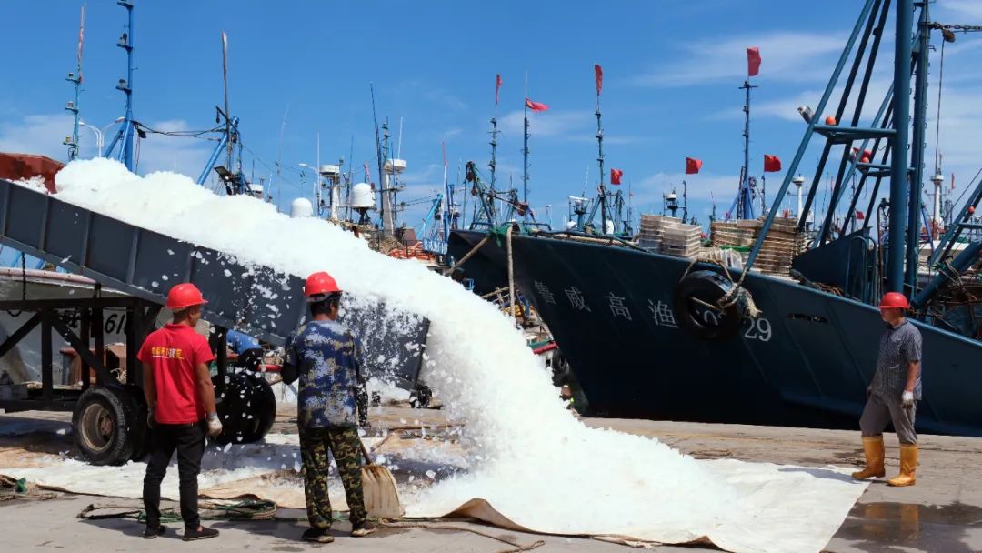 “其他准备工作早就完成了,今天主要是配合高新区渔业部门的检查和给船加冰,每艘船需要加30吨冰,用于储存打捞上来的海鲜。”夏坤指了指眼前的船。像这样的大型渔船,夏坤一共有4艘,此刻全部停在远遥渔港。说话间,吊车吊起一方冰块,顷刻间全数注入船舱,这也算是独属于他们的“仪式感”了。