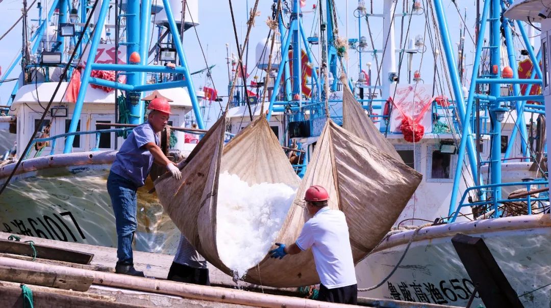 此时,船东夏坤和船员们早已整装待发,对于两天后的开海自是无比期待。夏坤说,由于冰块提前加会融化,所以每年只要进行到了给船加冰的工序,就意味着准备工作进入最尾声,开海日紧随其后,他们就盼着这一刻。