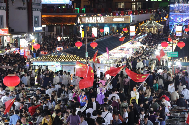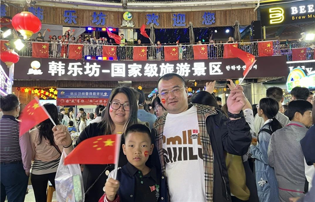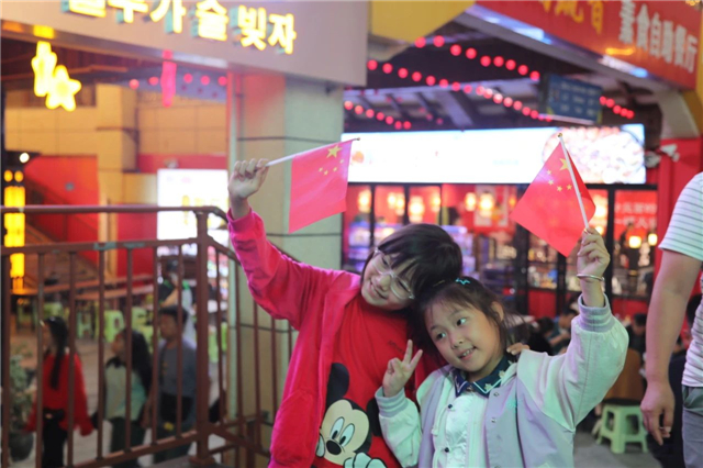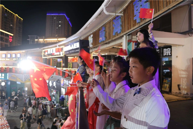 9月30日晚,经开区韩乐坊商圈管理服务中心在韩乐坊举办“万人同庆 喜迎国庆”快闪活动,专业歌手和上万名游客同台高歌,以快闪的方式庆祝中华人民共和国成立74周年,表达对祖国母亲的美好祝愿。
