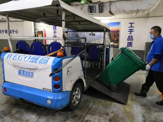 在提高商户环保意识的同时,威高广场的硬件设施也在不断更新。垃圾分类专用投放区,不仅铺设环氧场地,还增加清洗设备,安装密封卷帘门和除臭风机。“商场统一配备厨余垃圾桶,每日商户源头分类后,运送至中转区,工作人员现场检查,合格后置换空桶,可回收物预约回收,有害垃圾分类预约收运,其他垃圾由工作人员定时通过电瓶车转运至中转站,垃圾分类有序,运行流畅。”威高广场相关负责人说。