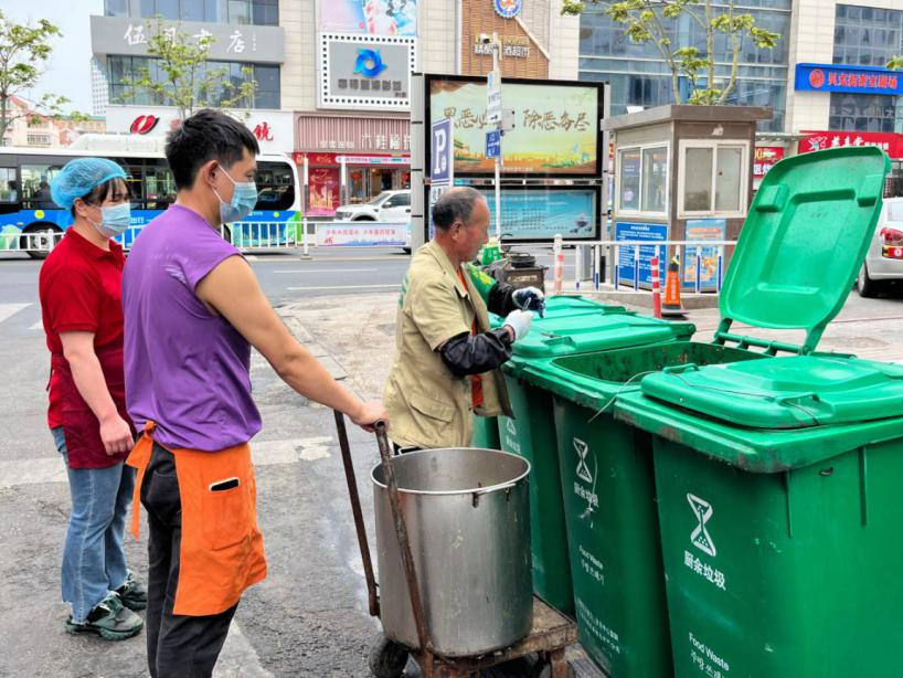 垃圾分类牵着民生、连着文明。商圈人流量大,企业及餐饮商户多,一直是垃圾分类工作的痛点难点。为优化环翠区的营商环境,推动厨余垃圾分类工作提质增效,环翠区环境卫生服务中心联合威高广场、环翠楼街道东南村社区,多方协力共同探索可复制、可借鉴的商圈餐饮机构垃圾分类“新模式”,形成“硬件设施完善、知识普及全面,宣传督导有力”的工作闭环,成功打造了商圈的垃圾分类典范。