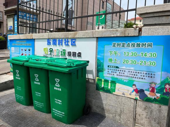 经过走访,环翠区环境卫生服务中心和东南村社区联合在东城路和金地商厦各设置了一个厨余垃圾集中投放点,根据商户的经营时间点,确定了两个固定的投放时间点,同时,针对大的商户,或者下班比较晚的商户,社区还给他们配备了垃圾桶钥匙,保障厨余垃圾日产日清。