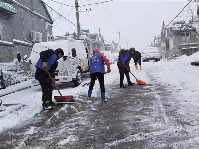 受冷空气影响,威海再次迎来强降雪过程,为消除降雪带来的安全隐患,经区崮山镇以雪为令、全员出动,开展清雪行动,保障全镇道路通畅和群众进出安全。