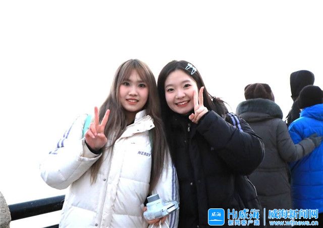 钟雪旖和郑欢予是在威海读书的大学生,分别来自海南和广东,两人6点半就来到这里等待日出。