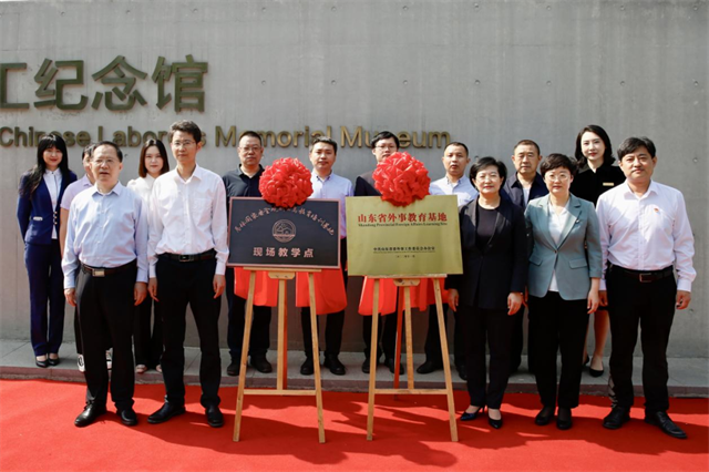 威海市一战华工纪念馆举行“山东省外事教育基地”“国安基地教学点”揭牌仪式。