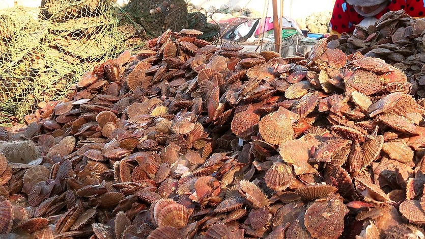 寒冬腊月,扇贝迎来了收获季。在山东省威海市环翠区的靖子码头,一艘艘满载扇贝的渔船陆续返回,工人们忙着分拣刚打捞上来的新鲜扇贝,尽享丰收喜悦。(来源:环翠区融媒体中心 李诗馨)