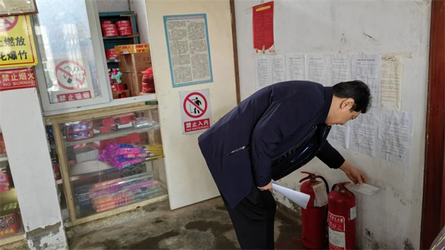 大疃镇安监办工作人员联合派出所等单位加大对烟花爆竹零售经营商店的巡查频率和力度,严查销售不符合国家强制标准、包装标志不全的烟花爆竹;严查销售国家明令淘汰并停止销售的烟花爆竹;严厉打击以假充真、以次充好、假冒或仿冒他人注册商标的违法行为。