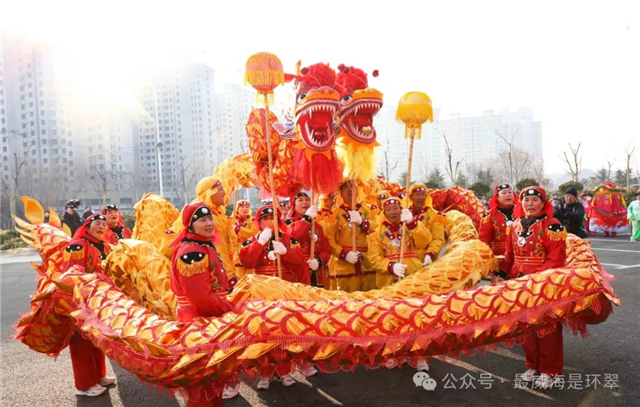 当精彩纷呈的“大活报”一出场,立即成为全场焦点。飞舞灵动的舞龙、威武跳跃的舞狮,引来群众阵阵叫好;特色十足的耍驴、妙趣横生的猪八戒背媳妇,惹得群众哈哈大笑;扭秧歌、打腰鼓、划船、耍彩……丰富多彩的表演展现了人们乐观向上的精神面貌,也让所有人在欢声笑语中感受浓浓年味。