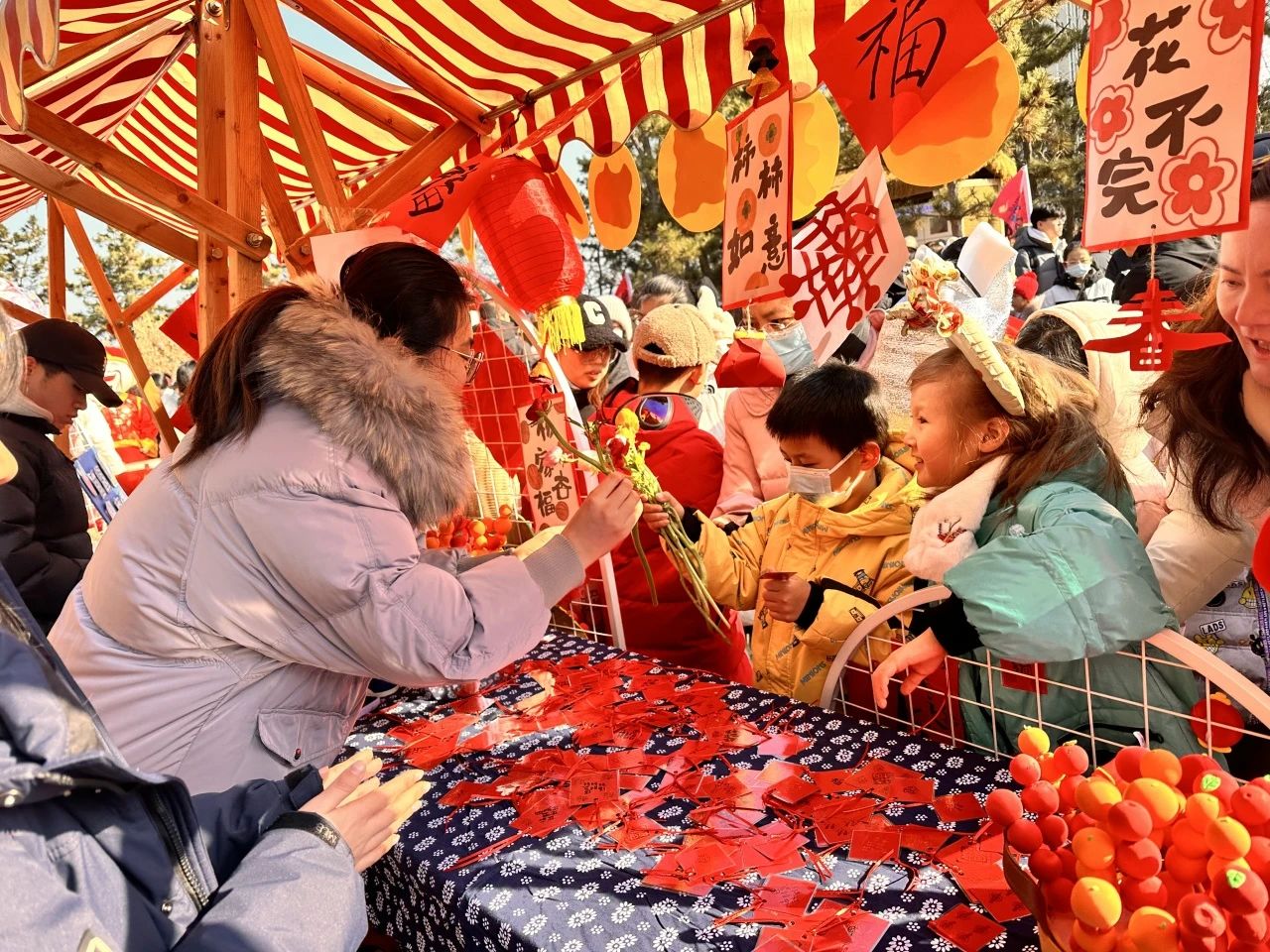 在“非遗”体验区,编结、拓印、面塑等传统工艺进行活态呈现,游客还能体验一把投壶纳福、冰壶等互动项目,就此开启一场沉浸式“非遗”体验之旅,趣味无穷。