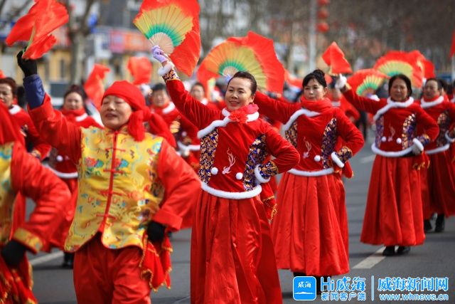 化新妆、穿彩衣,演员们精致亮相,扭秧歌、舞龙耍狮,精彩演出轮番上阵,大家沉浸在热闹的场景中感受着最暄腾的年味。(Hi威海客户端记者 王彦博 员雯/文 朱春晓/图)