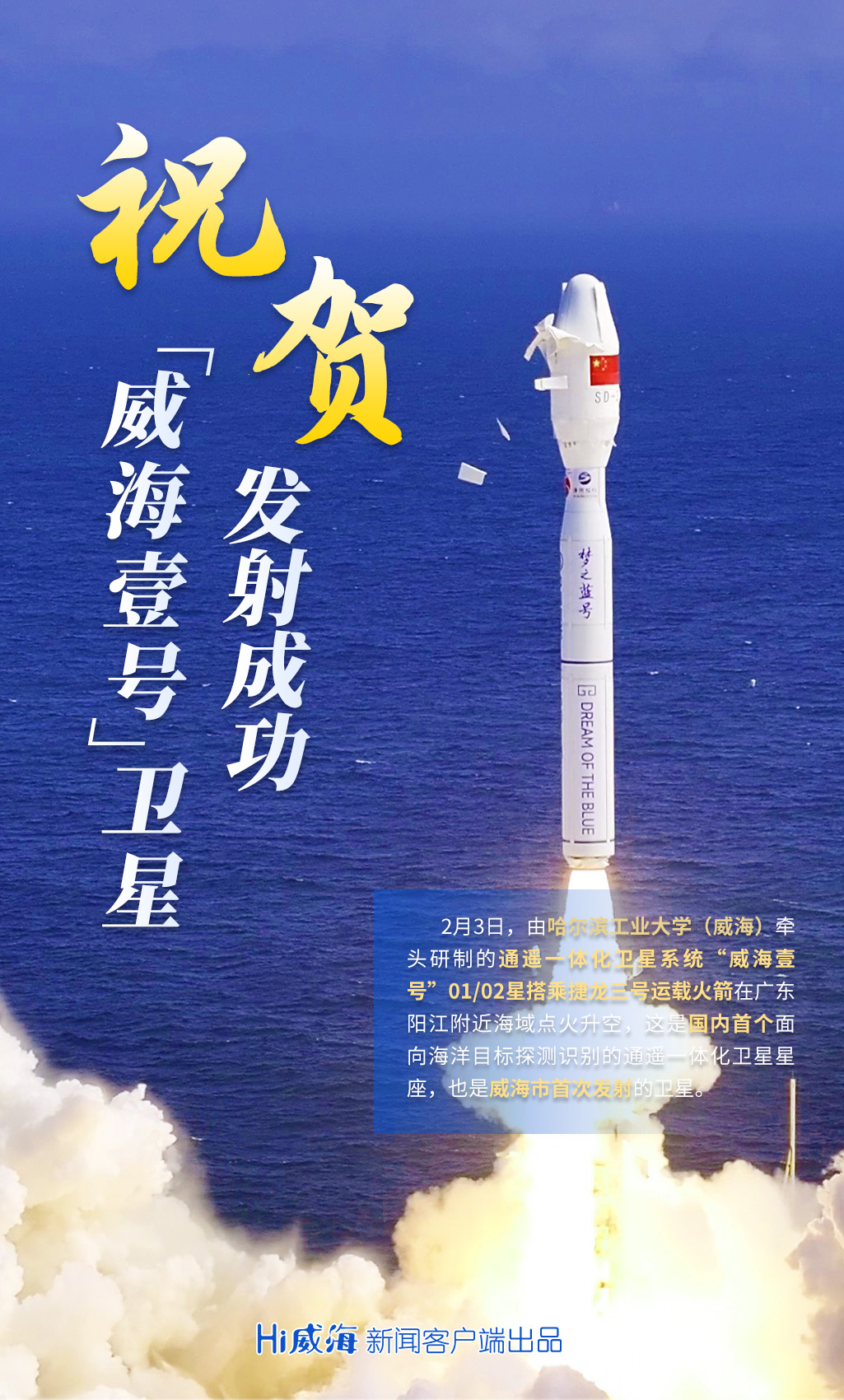 2月3日11时06分,捷龙三号运载火箭在广东阳江附近海域点火升空,顺利将由哈尔滨工业大学(威海)牵头研制的通遥一体化卫星系统“威海壹号”01/02星送入预定轨道,发射任务取得圆满成功。
