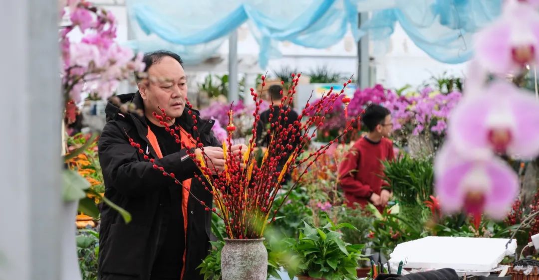 新年买鲜花不仅为节日增添了浓厚的喜庆氛围,也承载着人们对新年的美好愿望和祝福。2月14日,正值龙年正月初五,高区花鸟鱼市场就提前开业了。