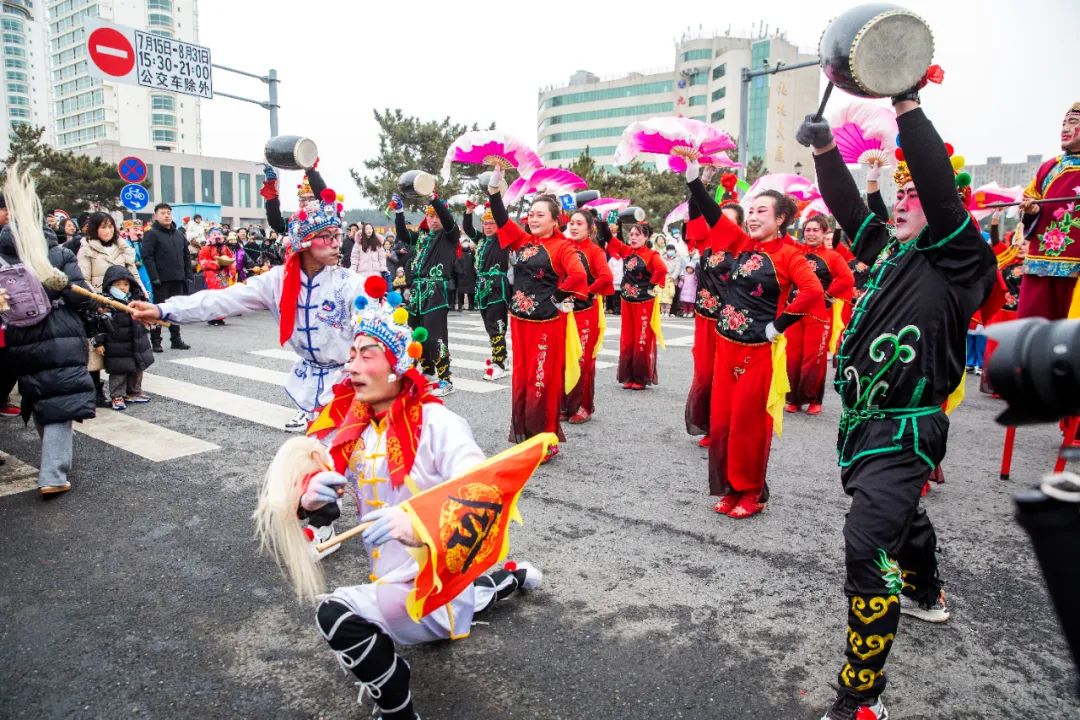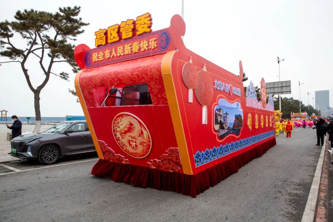 敲锣打鼓人声鼎沸,民俗表演轮番上演。2月24日上午,高区“龙行龘龘过大年”大型民俗游艺展演精彩上演,沿环海路经大白帆广场和火炬八街,一路向西行进至小石岛。现场汇集八方游客、男女老少,共享民俗文化大餐。