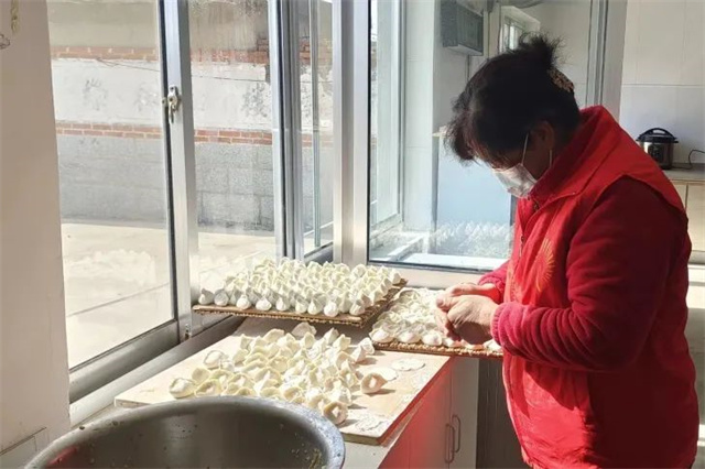中午时分,志愿者将煮熟的饺子端上了暖心食堂的餐桌。餐厅内,老人们围坐一桌,志愿者们将热气腾腾的饭菜端到每一位老人的手里,老人们脸上洋溢着幸福的笑容。现场志愿者们还详细询问老人们对餐食的评价,是否符合老人们的期待。吃完水饺后,老人们连连称赞:“饺子包得太好了,比自己家的都要好吃,在这里吃饭还能和大家一起聊聊天,以后每天都要来。”