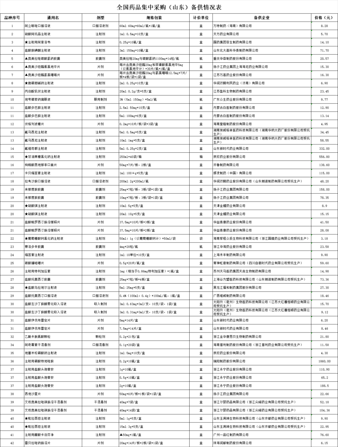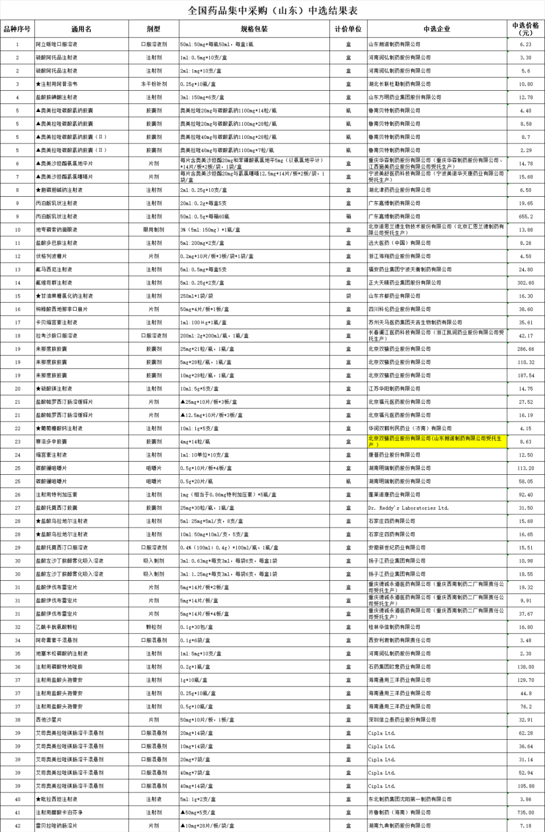 (七)做好与省集采中选结果衔接。山东省药品集中带量采购与第九批国采通用名、剂型重合的品种,不再标识省集采中选身份。同企业的省集采中选价格和第九批国采中选价格不一致的,按第九批国采中选价格执行,省集采中选但第九批国采未中选的,企业按规则自愿联动调整挂网价格,省集采第二评审组未通过一致性评价的,落实挂网撤网政策。