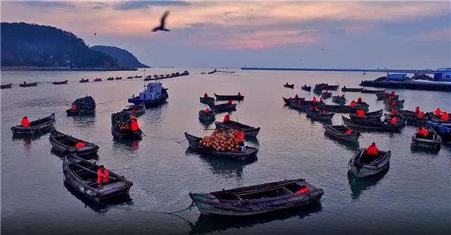 近日,山东威海荣成市各大海洋牧场海带养殖区一派繁忙景象。养殖工人驾船穿梭在养殖浮筏之间,检查海带的生长情况,对达到成熟标准的海带进行采收。(来源:荣成市融媒体中心 姚晓芳 吴峰)