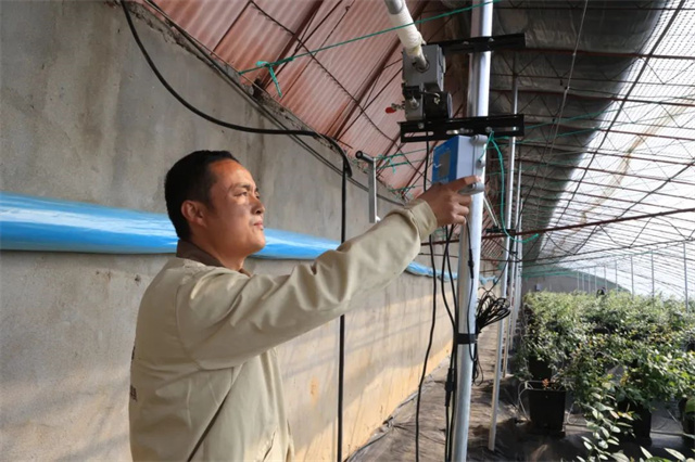 智慧大棚链接5G物联网,配备了智能化的滴灌、喷灌系统和温度、湿度控制系统,在手机上远程遥控,即可精准调控大棚,确保每一颗蓝莓都能得到充足的水分和养分,呵护蓝莓生长全过程。