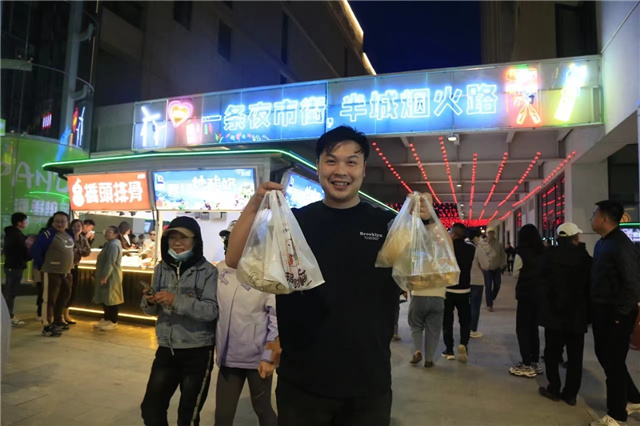目前,泉乐坊“零点夜市”里,已有100余家商户入驻,烤串、钵钵鸡、烤冷面、冷饮……100余种网红小吃一应俱全。每个摊位前都人头攒动,商户们忙得不亦乐乎。