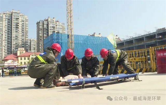 “报告通讯员,因强降雨,基坑水位持续上涨,雨水即将淹没地下配电室,情况紧急请求救援!”近日,在威海城投海滨路项目现场,环翠区在建房屋项目防台防汛应急演练正在进行中,随着预警报告响起,各行动小组迅速依令而动,抽排积水、救治伤员、疏散人群。