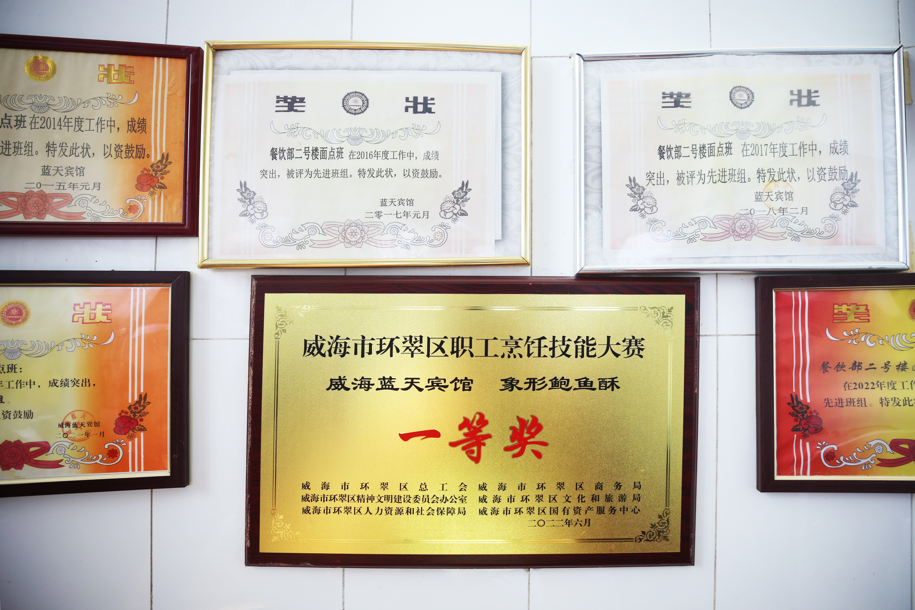 唐在飞所带领的厨师队伍中,孔晶晶获得威海市首席技师,迟晓平、王建清获评威海市技术能手,多位徒弟在省、市各类技能比赛中获得优异成绩。