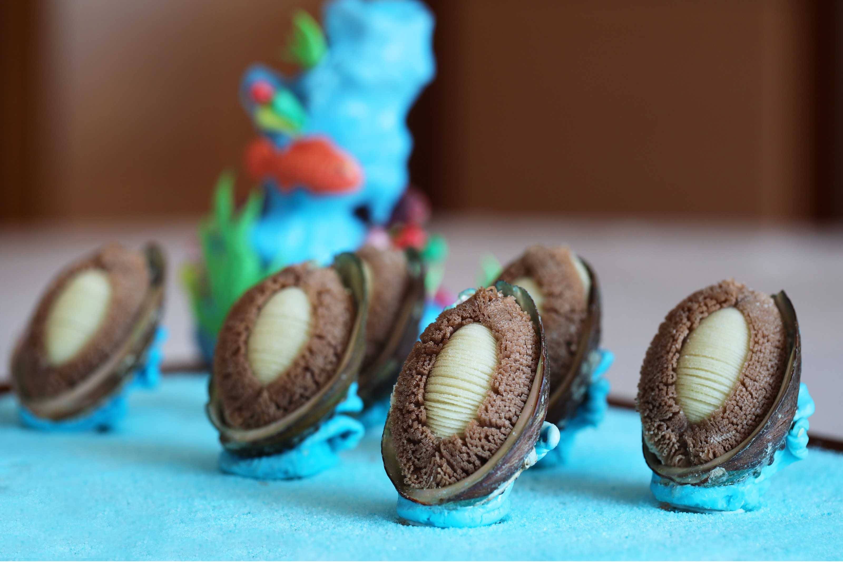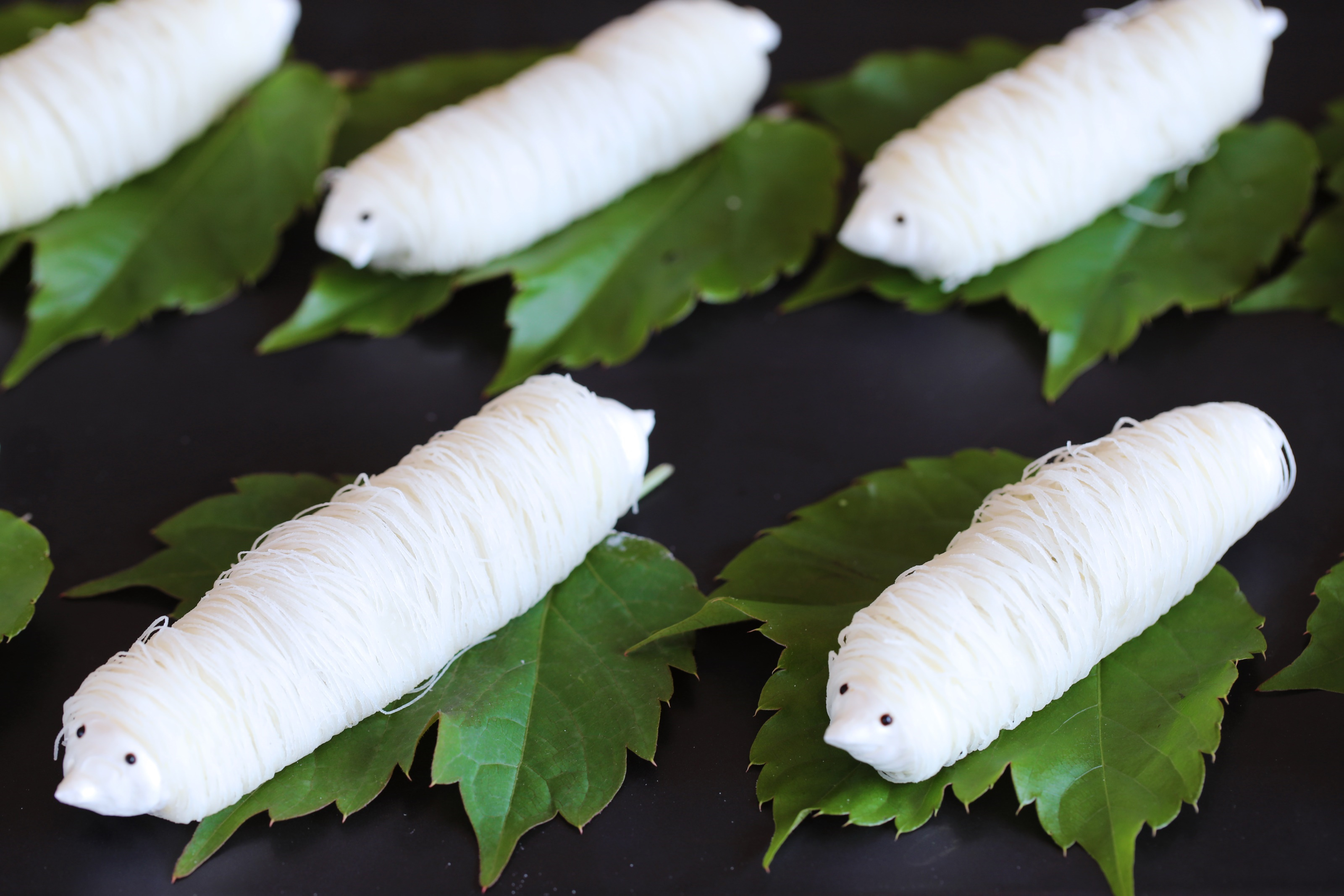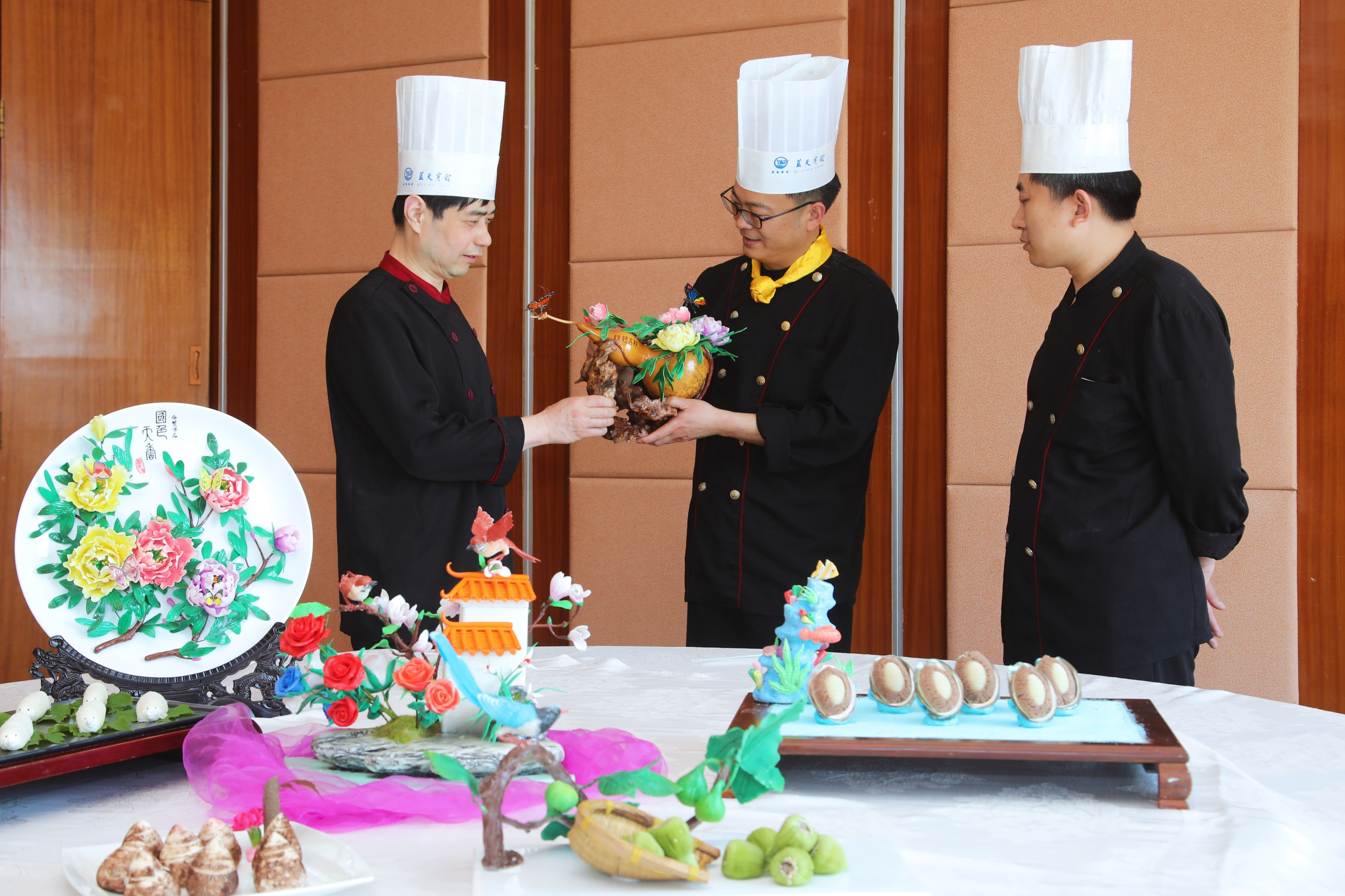 像形墨鱼水饺是采用墨鱼汁制作面皮,传统墨鱼作为馅料制作的一款威海特色面点,被评为“威海市名小吃”;春蚕吐丝是将面团拉成细如发丝的面条,口感独特,被评为“山东省金牌小吃”;唐在飞还将月饼的制作在传统技法上进行了改良创新,制作出经典“蓝天五仁月饼”,形成吃五仁月饼到蓝天宾馆的美誉,每年为酒店带来130多万元经营收入……凭着创新,唐在飞取得了累累硕果。