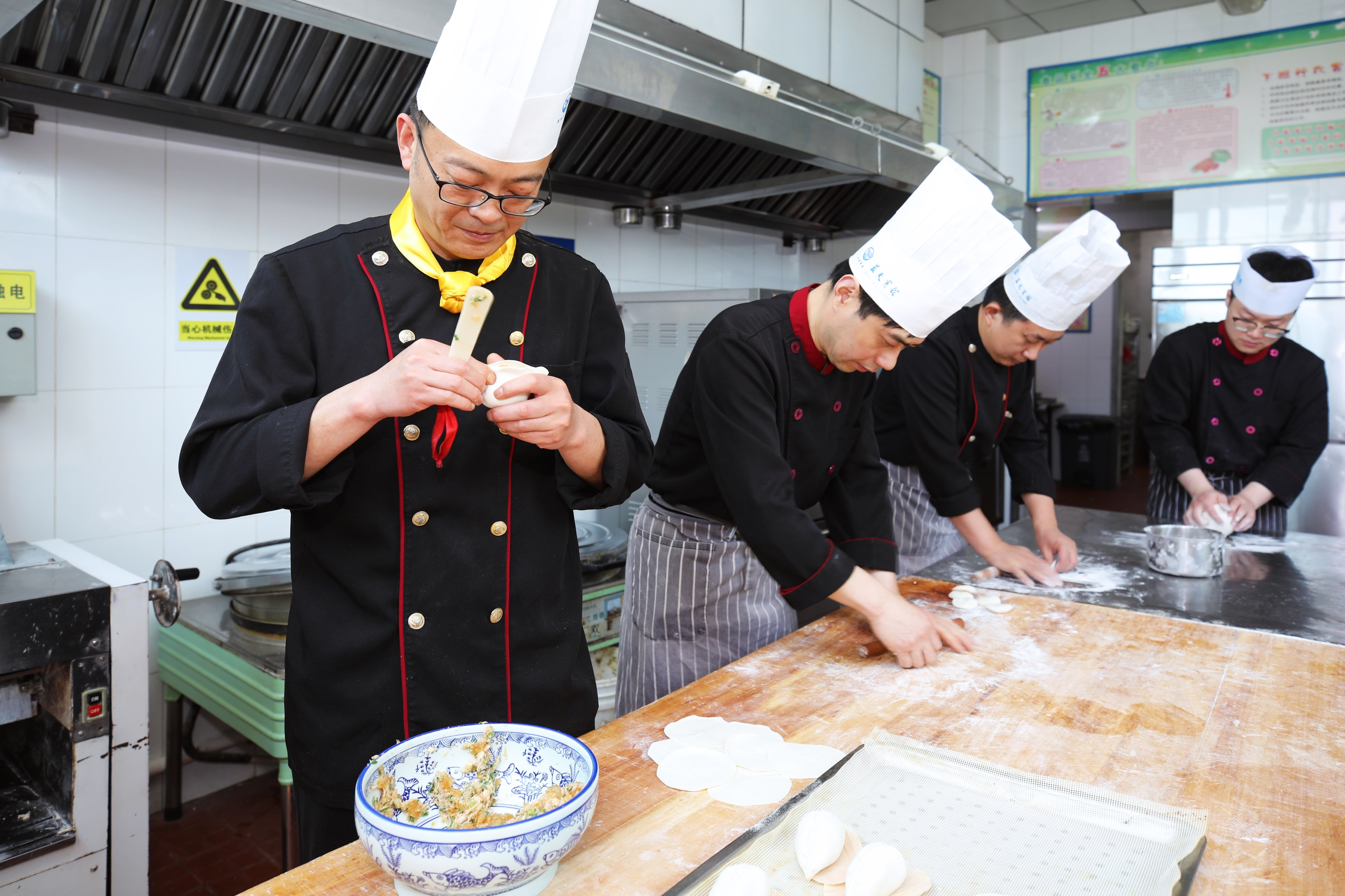 换上厨师服、戴上厨师帽,和面、擀皮、开酥、烤制、摆盘……他用一双巧手,把传统中式面点做得既美味又美观,令人一见倾心,诠释了中式面点师的匠人匠心。从业近三十年,他踏踏实实,从学徒做起,从一名面点学徒成长为技艺高超的面点大师,先后获得“山东省技术能手”“威海工匠”“威海市首席技师”“威海市劳动模范”“齐鲁首席技师”等荣誉,他就是专攻中式面点的威海蓝天宾馆有限公司副总厨师长唐在飞。