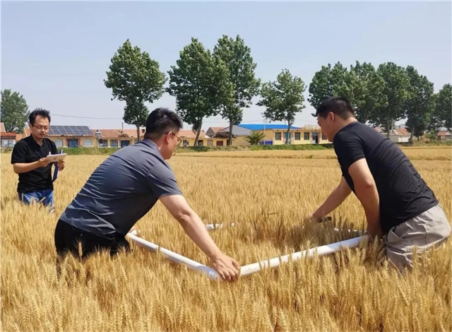 小麦收割季节来临,6月11日,国家统计局威海调查队副队长段磊带队到临港区汪疃镇曹家房村,进行实割实测实地工作指导。