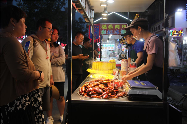 “您吃什么口味?”“有忌口的吗?”……在东城路夜市的哆哆烤冷面摊位前,小吃摊经营者赵丽民一面询问顾客口味,一面在铁板上同时摊铺了五张冷面,火爆的生意往往让他一站就是几个小时,连喝口水的时间都没有。“每天晚上都能卖一二百份烤冷面,赶上周末,销量更多。”面对忙碌的生意,赵丽民充满了喜悦与期待。