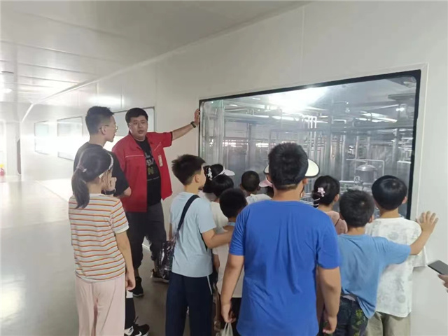 孩子们跟随工作人员来到养味生产车间,透过参观通道的透明玻璃,干净整洁、先进高效的现代化生产车间一览无遗。在工作人员的讲解下,大家对自动化生产线有了更深的了解,也意识到自动化生产线的背后需要大量的科学知识和技术支持。