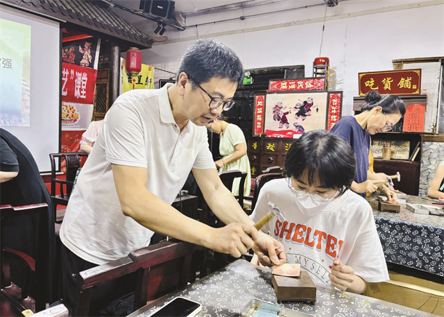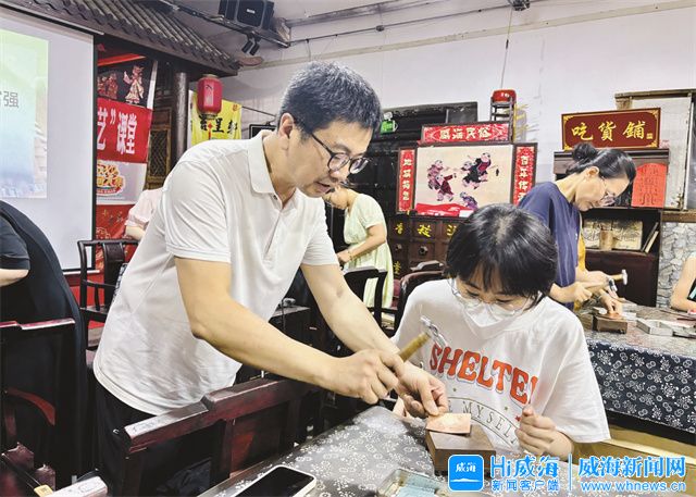 Hi威海客户端讯 8月9日晚,威海市图书馆“深夜识堂”首家合作办学点在吉呈轩非遗实践基地开班。