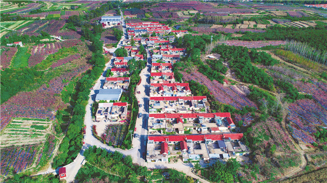 红瓦绿树与美丽的田园、起伏的山峦相映成景,将垛岭村勾勒成一幅精美图画。