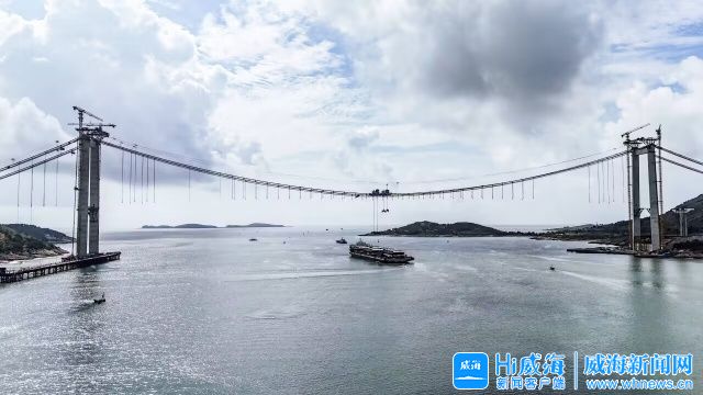 当前,乳山口大桥项目下部结构已基本结束,索塔顺利完工,威海侧引桥施工圆满完成,索鞍索夹安装结束,吊索安装有序推进,项目建设取得重要阶段性成果。