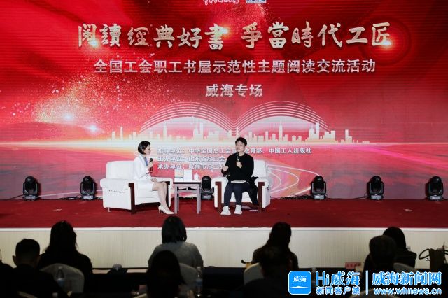 阅读交流活动由威海职工阅读专题片《最是书香能致远》拉开序幕;全国五一劳动奖章获得者、威海光威复合材料股份有限公司车间主任谷大伟现场推荐书籍《大国工匠人物传》,号召职工牢固树立不断学习、终身学习理念,争做新时代的最美奋斗者;由职工读书达人田淑丽带来的美文赏析《秋色赋》,让现场观众深刻感悟到“时代赋予秋天以不同色彩”的鲜明主题,表达了威海人民爱党爱国爱家乡的优良传统;劳模工匠代表深情朗诵的诗歌《精致威海 书香润城》带领观众沉浸式体验了书香威海的独特魅力。